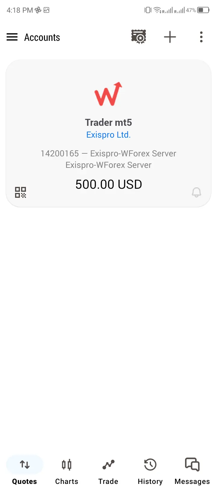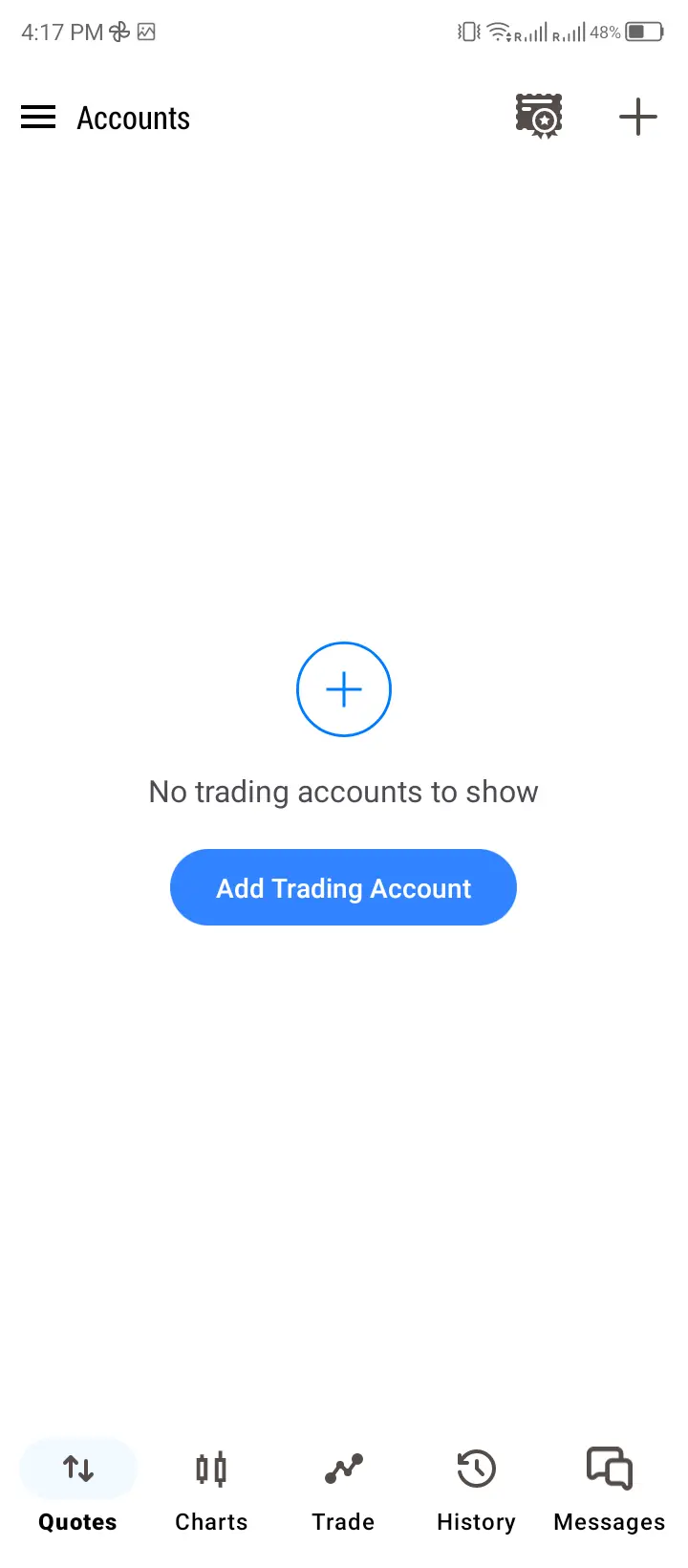Download the application Meta Trader 5 via Play Store and run the application on your device.